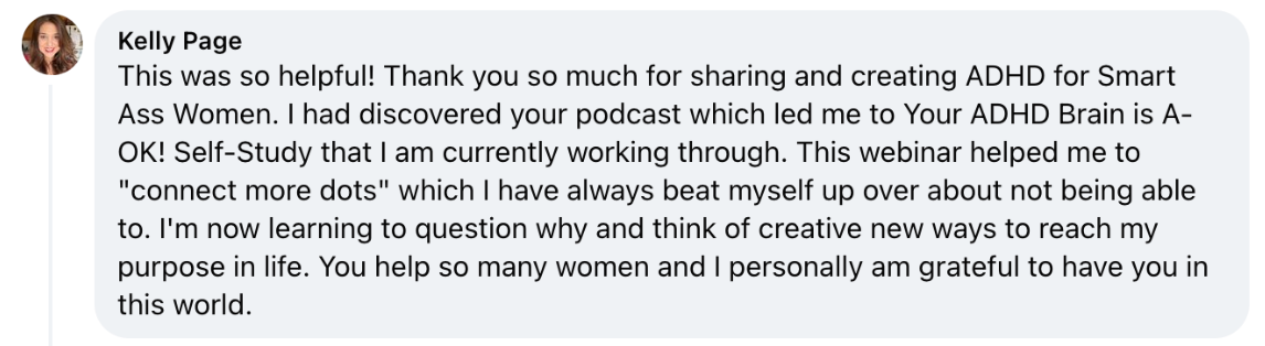 Here’s what I know: what we believe we’re capable of determines what we achieve. Too many brilliant women shrink their expectations because they’ve never learned how to zero in on their strengths and work with their ADHD brain.