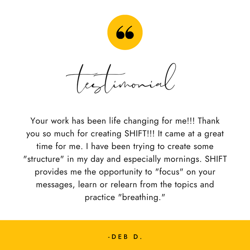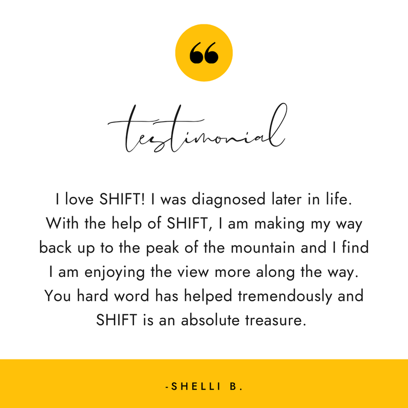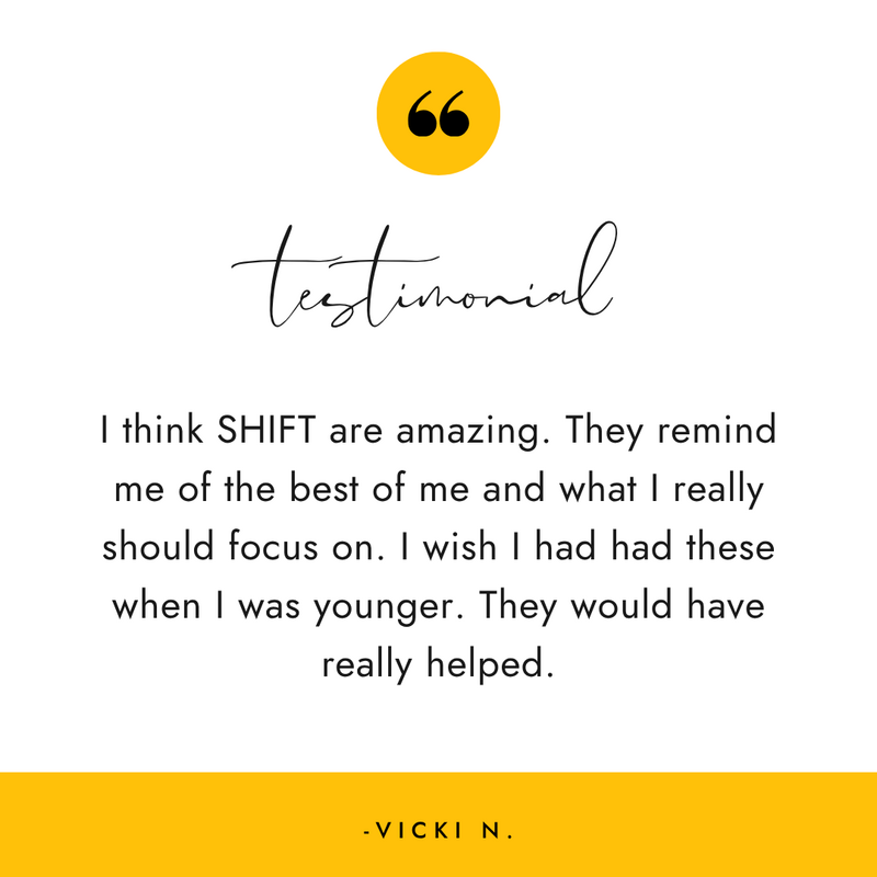 Ready to elevate your mindset and cultivate more positive emotions? While therapy, workshops, coaching, and self-help books all have their place, SHIFT offers a unique alternative, a quick, simple, and affordable way to boost your mindset and emotional well-being every single day.
