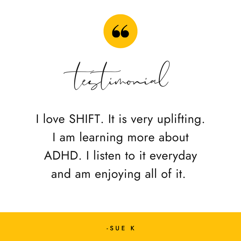 Then I took the top 100 sessions, the ones that hit hardest, landed deepest, and changed the most lives and shaped them into SHIFT: a 100-day mindset reset designed to shift how ADHD women see themselves, for good - fully edited and enhanced for a more powerful experience.